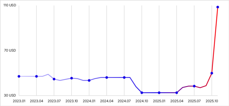 W kategorii DRAM, od stycznia bieżącego roku, cena modułu DDR5 16GB wzrosła o ponad 300%. Przy czym tylko w ciągu ostatniego miesiąca cena wrosła z ok. 50 USD na ponad 100 USD.